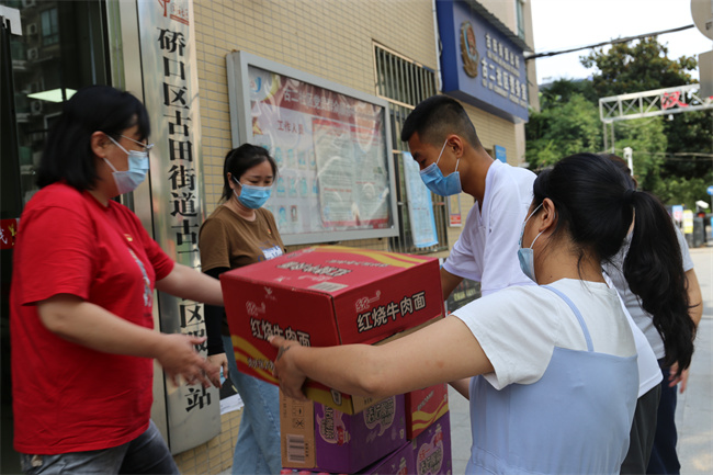 疫情無情人有情。2021年8月6日下午,公司黨委副書記、紀(jì)委書記談逢陽代表公司向?qū)谙鲁恋墓哦鐓^(qū)捐贈了防疫物資以及生活用品,并詳細詢問了社區(qū)防控需求情況