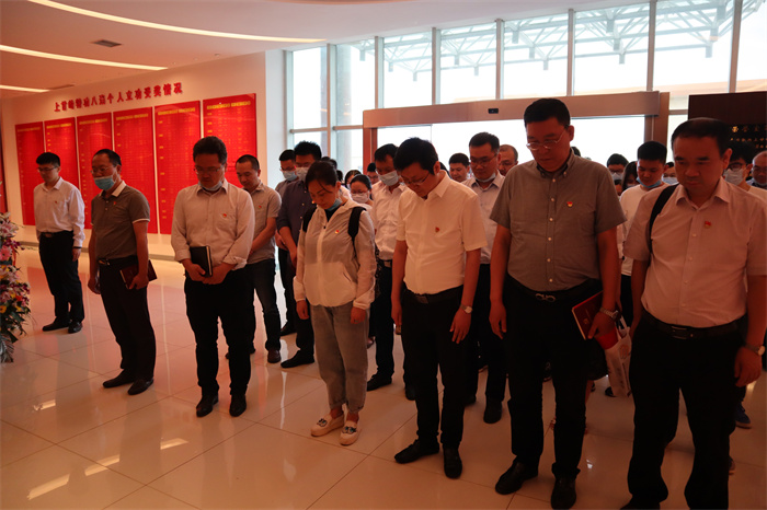 國(guó)歌唱畢,全場(chǎng)肅立,向在上甘嶺戰(zhàn)役中英勇?tīng)奚牧沂磕?。默哀畢,在第三黨支部書(shū)記、地下空間設(shè)計(jì)院院長(zhǎng)彭定新的領(lǐng)誓下,大家面對(duì)黨旗,舉起右拳,重溫入黨誓詞,重憶入黨初心。